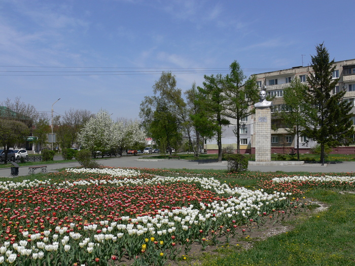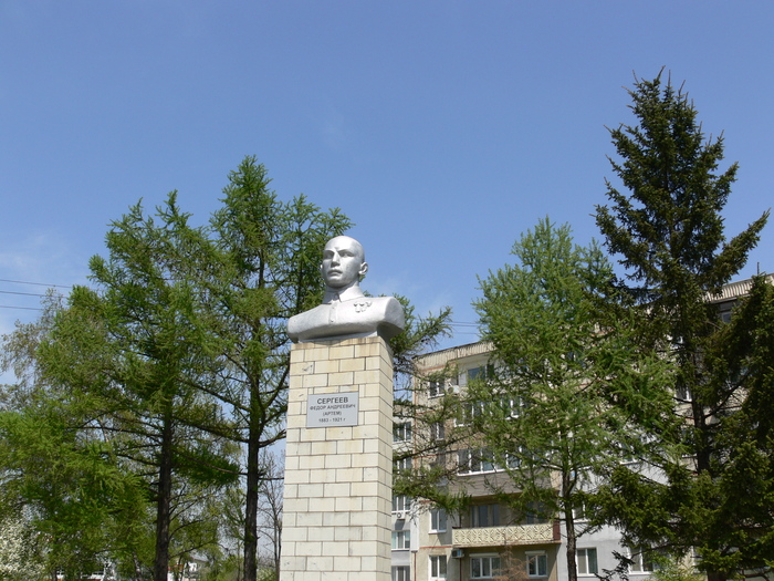 Здесь я предлагаю перейти на другую сторону улицы, чтобы попасть в сквер имени Артёма. Друг товарища Сталина, Фёдор Андреевич Сергеев никогда не бывал в Приморье, насколько я знаю, однако память о нём сохранилась вот здесь, на дальней окраине страны, не только на Донбассе. Побывать в Артёме и не посмотреть на того, в чью честь он был назван - непростительно:)