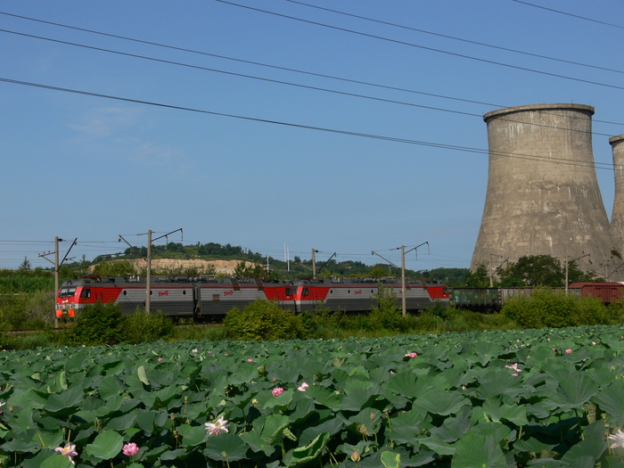 Садимся на автобус 2М, который ходит раз в 20 минут, и едем до остановки Клуб. Здесь нас встречает Сквер Энергетиков с фонтаном, построенным японскими военнопленными, маленький и уютный, фотографии которого я выложу в комментариях, ибо Пикабу не даёт прикрепить больше 25 фото, но главная достопримечательность ГРЭСа - озеро лотосов, официально - Карасиное. Попасть туда несложно: спускаемся из Сквера Энергетиков по широкой лестнице вниз к стадиону, проходим немного вправо - и вот оно озеро. В период цветения лотосов примерно с конца июля по конец августа-сентябрь виды там открываются просто замечательные. Трубы градирен и поезда на фоне цветущей природы впечатляют. А в прошлом году на озеро прилетали вот такие вот красивые утки.