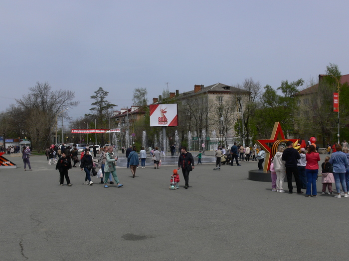 Продолжаем наше пешее путешествие по улице Фрунзе, и очень скоро выходим на площадь Ленина, где к 1 мая открыли пешеходный фонтан. Кроме того, здесь можно увидеть ещё один мурал, посвящённый подвигу наших предков. Площадь будут ещё модернизировать, пока далеко не всё готово, а многие горожане и вовсе недовольны, что теперь не могут парковать здесь свои автомобили, как было много-много лет до этого. Город лишился парковки, но приобрёл пешеходную зону.
