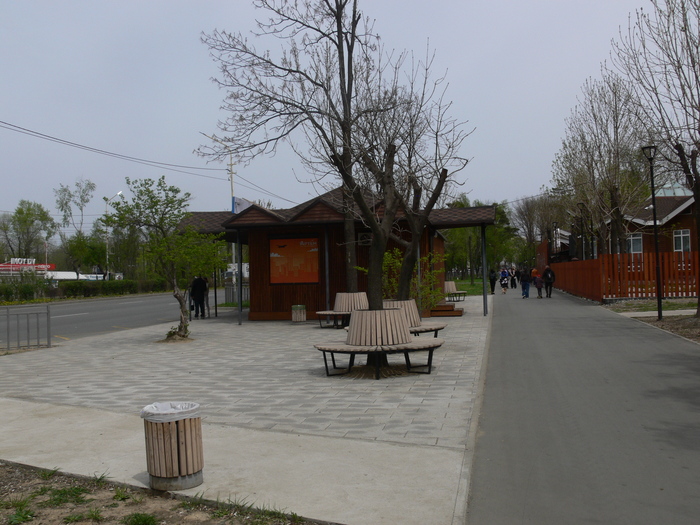 Добраться до Артёма из аэропорта можно на автобусе номер 7. Интервал у него примерно 30 минут, в течение дня немного меняется. Проезд по городу 37 рублей безнал, 40 - наличные. Первую остановку предлагаю сделать на Севастопольской. Вообще-то официально эта автобусная остановка называется Аэропорт, но все зовут её Севастопольской. Раньше неподалёку располагалась станция Аэропорт, но её давно уже перенесли в другое место, переименовав заодно в станцию Артём. А старое название автобусной остановки вот осталось. Ну да неважно. Выйдя на Севастопольской, нам нужно перейти поочерёдно две улицы - Западную и Фрунзе, и вот мы уже в Парке Авиаторов.