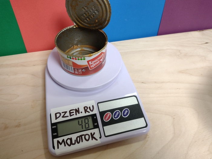 видим внутри жидкую кашицу и торчащих тощих рыбок именно это мы сейчас и будем пробовать общий вес вместе с банкой 286 грамм