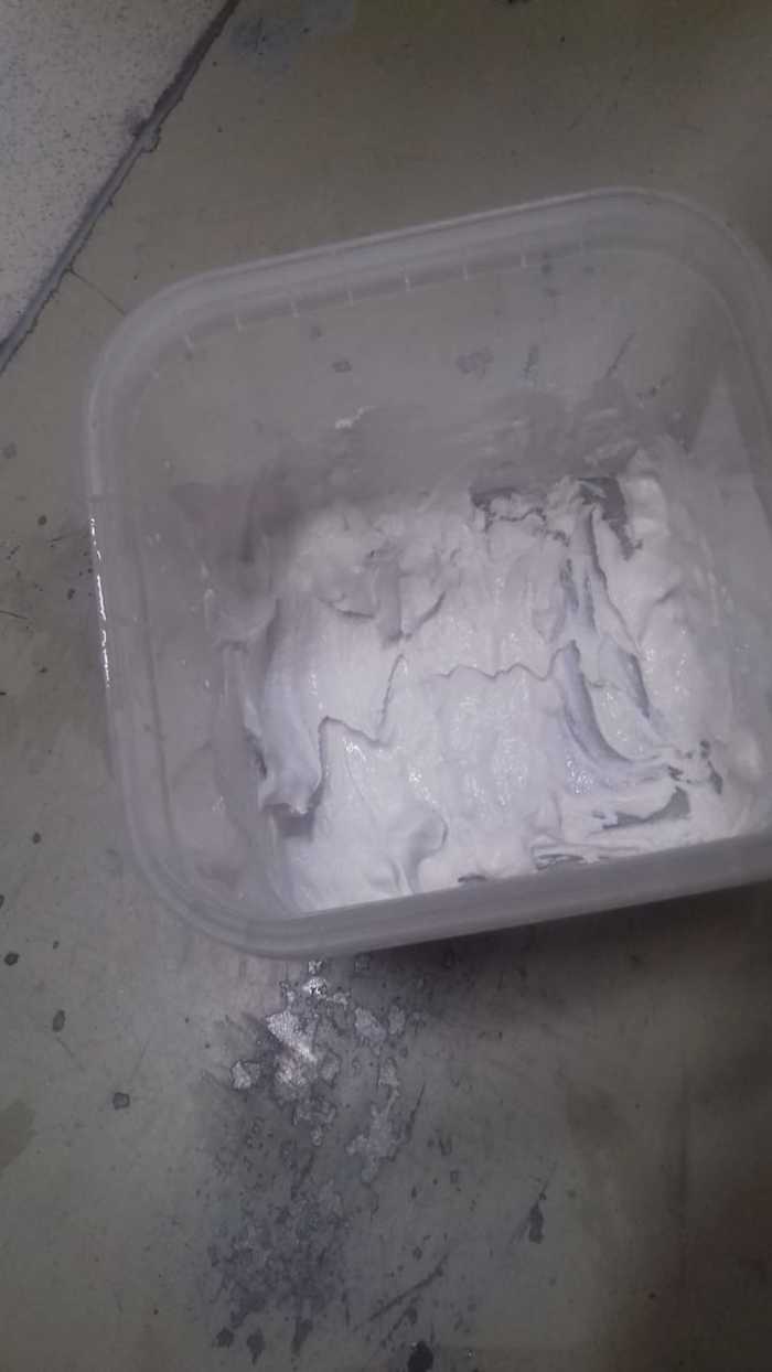 А вот и проба с претензионной шпаклевкой подъехала. У нас все норм, белая и отличная.