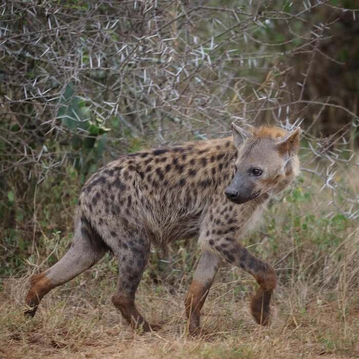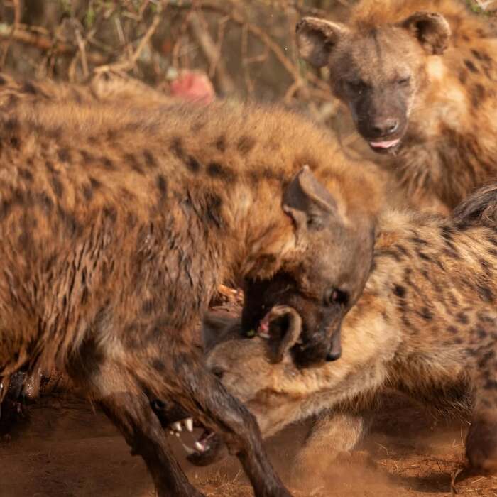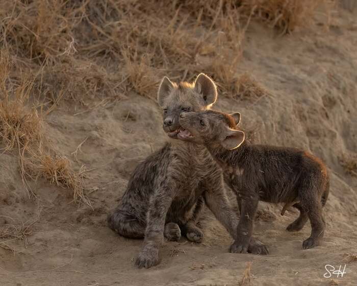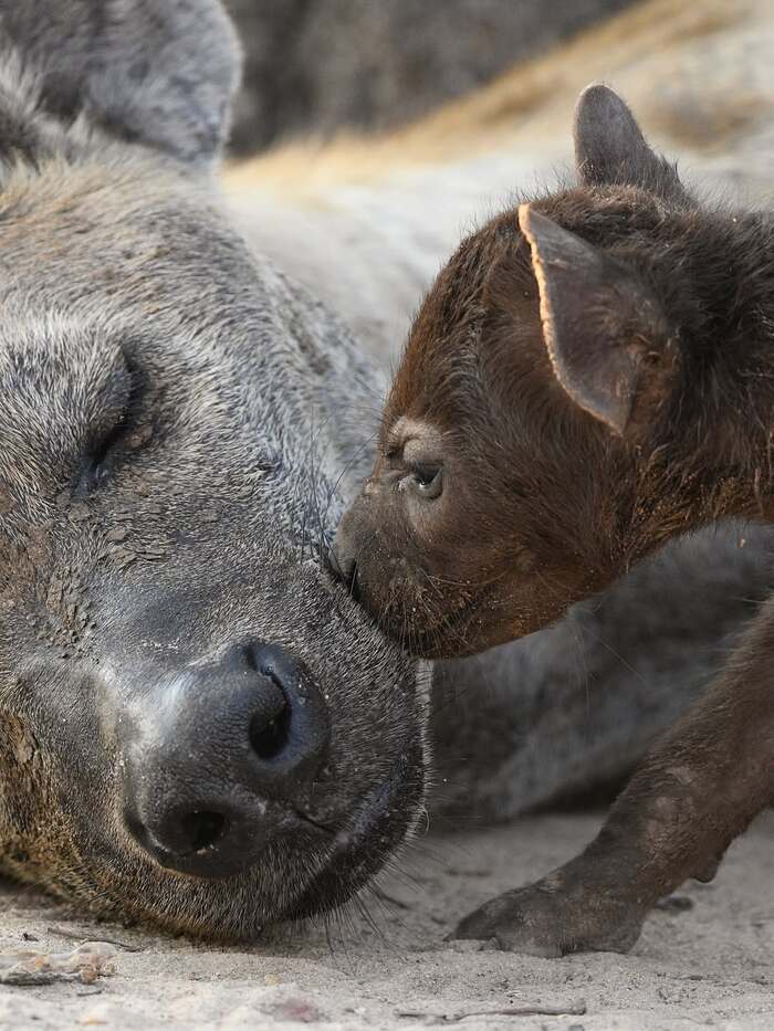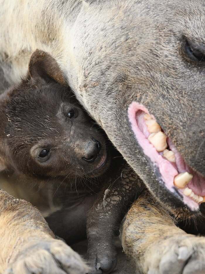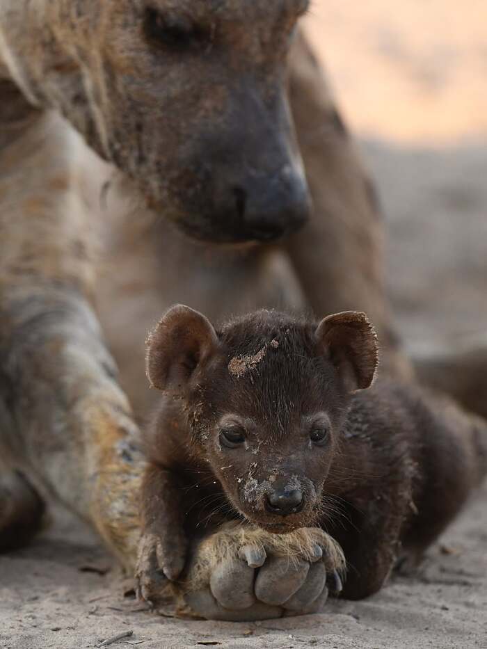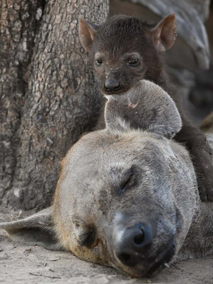 У этого маленького детеныша гиены было неиссякаемое количество энергии, а бедная мать просто хотела отдохнуть. Классический момент воспитания, вид не имеет значения.