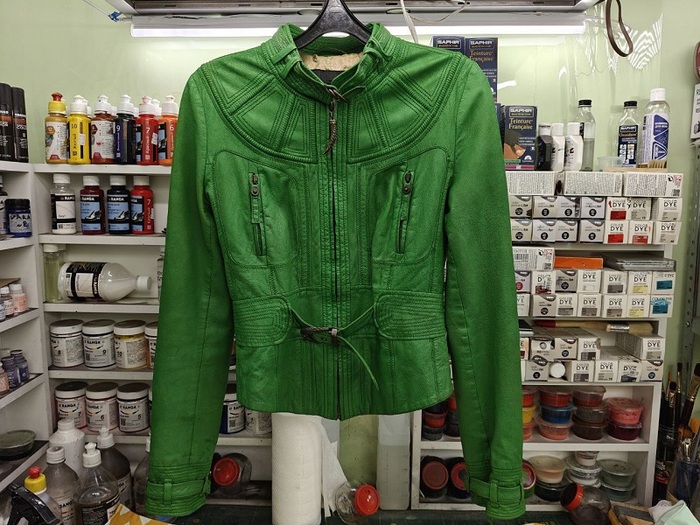 Что мы сможем сделать в этом случае? Опыт по окрашиванию курток у нас есть, но это были все черного цвета и довольно грубые косухи, а тут нечто необычное и главное цвет.