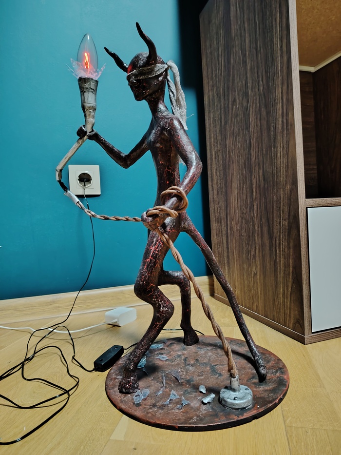 Итог: из безликой китайской игрушки за пару сотен рублей получился очень милый светильник, который создаёт нереально уютную атмосферу. Собирается за вечер, а радости — на все праздники! Главное — не бояться делать и дать волю фантазии.