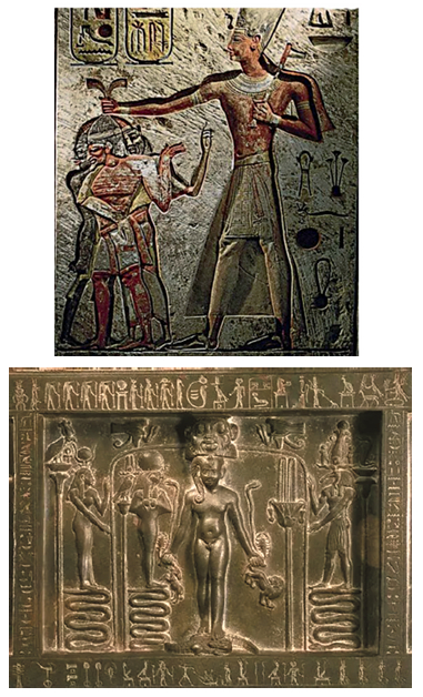 Из древнеегипетских преданий известно, что на севере Африканского континента существовала древняя страна Та Кеми, основанная девятью белыми богами, пришедшими с севера. Греки называли их киммерийцами. Вероятно, речь идет о гиперборейских жрецах, обладающих обширными познаниями, которые позволили достаточно быстро сделать Египет цивилизованным государством. Эти боги научили местное население тайным наукам, добыче и использованию полезных ископаемых, строительству жилья и храмов, владению техникой земледелия и орошения посевов, животноводству, ремесленному искусству, судовождению, военному делу, музыке, астрономии, поэзии, медицине, передали секреты бальзамирования и т. д. Изображения великанов в сравнении с обычными людьми 80 можно увидеть на фресках Древнего Египта (рисунок 2).