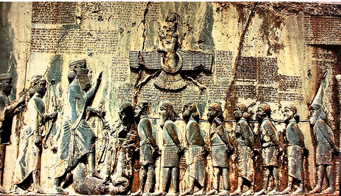 На одном из шумерских барельефов изображена сцена встречи людей и великана (рисунок 4), возможно, иллюстриру ющая прилет на Землю бога Солнца Шамаша из древнего эпоса «Полет Этаны». Можно также допустить, что, судя по боро де, это Гильгамеш на встрече со своими подданными. Кроме того, анализ исторических и археологических иссле дований, легенд, сказаний и преданий различных народов мира позволяет выявить объекты, возникновению или строи тельству которых не всегда дается однозначное научное объяс нение. Здесь прежде всего следует упомянуть пирамиды Египта, Мексики, Китая, а также многочисленные находки древнейших, в большинстве своем разрушенных, монументальных строений на территории Евразийского континента, в частности, в горных районах России. Причем ученые отмечают, что блоки мегалити ческой полигональной кладки сопряжены между собой так, что между ними не остается щелей. Сходство сооружений из огром ных камней в разных регионах планеты позволяет предполо жить их единую физико-техническую сущность, назначение и возможность создания таких строений архитекторами и инже нерами одной цивилизации, изначально проживавшей на севере.