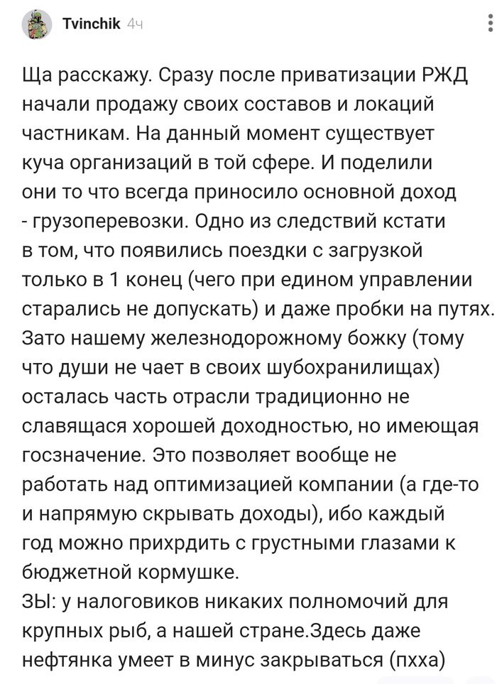 При этом Тедеев оценивает финансово-экономическое положение РЖД стабильным, с перспективами восстановления прибыльности, в том числе от эффекта исполнения инвестпрограммы (в 2025 году она сократилась на 40,3%, до 890 млрд руб. — РБК). По его мнению, текущая ситуация отражает скорее «переходный этап», связанный с масштабными инвестициями в развитие инфраструктуры. Михаил Бурмистров, гендиректор «INFOLine-Аналитики», напротив, считает, что в следующем году совокупность таких факторов, как рост процентных расходов и опережающий рост расходов на персонал (в 2024 году РЖД дважды индексировали зарплаты работников, в общей сложности на 7,3%, также увеличили их минимальный размер) в том числе, «неизбежно» приведет к существенным убыткам компании в 2025 году. «Это в целом было понятно, когда погрузка оставалась на среднем уровне, не падала так существенно, но сейчас с учетом масштабного падения ситуация будет очень неблагоприятной и никакое повышение тарифов (в конце 2024 года тарифы РЖД были проиндексированы на 13,8%) ее не спасет», — пессимистичен он.