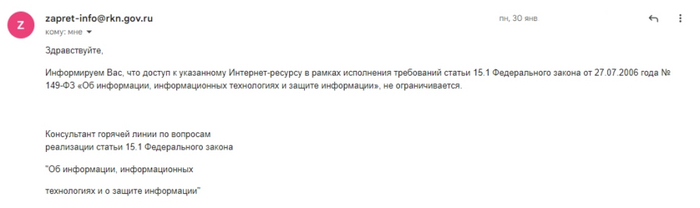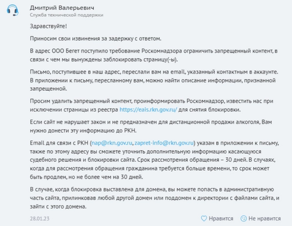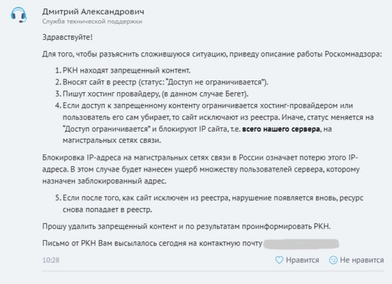 Владелец сайта пишет в РКН, мол объясните причину в чем проблема и т.п.
