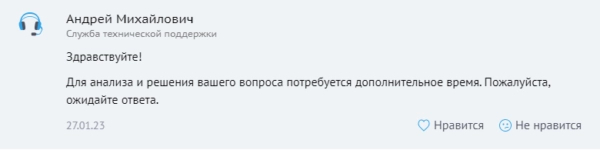 В нашей ситуации реальный ответ мы получили примерно спустя 5 часов: