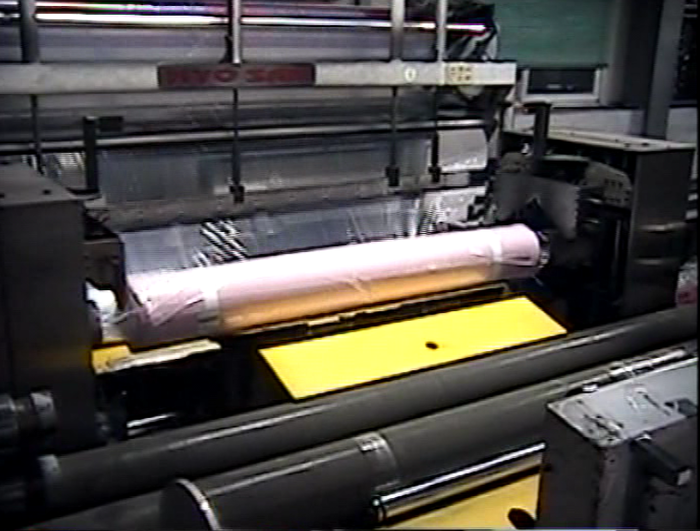 Я одел фартук и перчатки... Залез на машину (сверху можно было открыть специальные люки и видеть как намоталась ткань) и оттуда отдавал команды "stop/start", для каждой линии ткани, пока мы не распутали все пять. Кинг-Конг был настолько напуган и растерян, что беспрекословно следовал моим командам.
