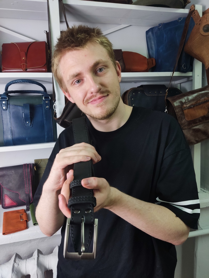 Роман не появлялся дней 9 в мастерской, чего то совсем оброс, настаиваю, чтобы побрился и подстригся, но пока вот так. Ну я его и таким ценю, ремни у него отличные😉.