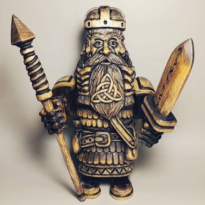 Материал берёза, морилка, льняное масло, воск, акриловые краски. Высота 15см.