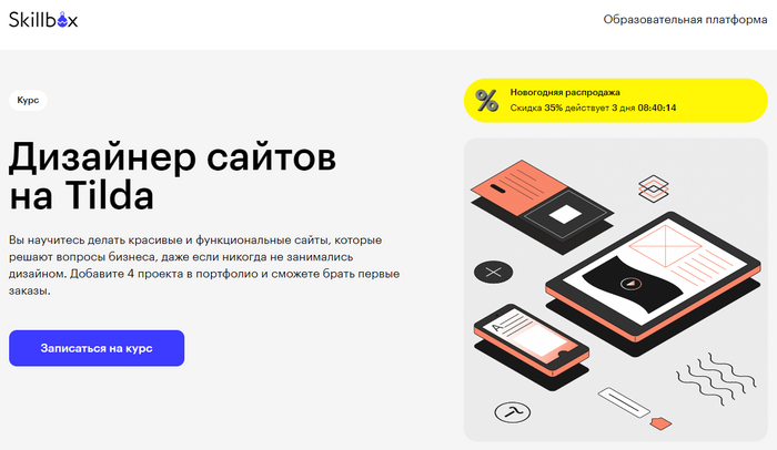 Курс Дизайнер сайтов на Tilda от Skillbox.ru — курс с отработкой навыков на брифах от реальных заказчиков.