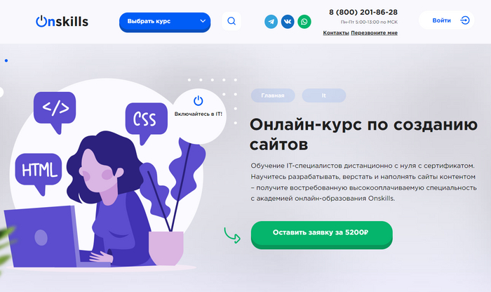 Онлайн-курс по созданию сайтов от Onskills.ru — лучший курс для новичков.