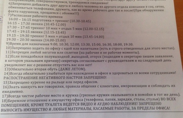 На каждом перерыве нас мотивировали, учили работать с возражениями, потом мы опять шли звонить(обманывать людей). Почему обманывать, да потому что та же история, что и с Дешали: кредиты, продажи косметики.. Хотя по телефону мы говорим, что ничего не продаем и кредиты не оформляем.