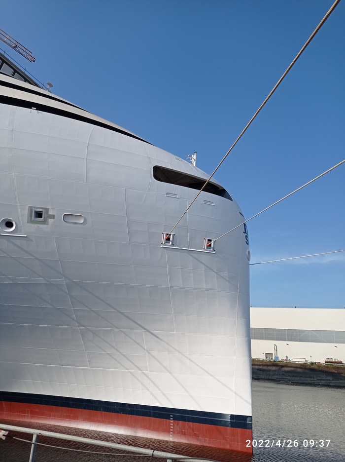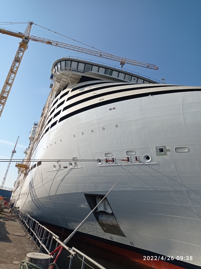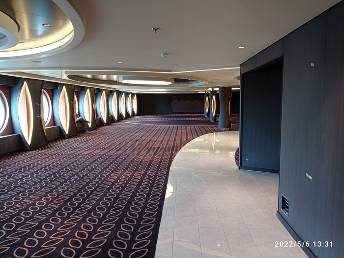 На строящемся лайнере кипит работа. Сейчас это интерьер, изоляция, малярные и декоративные работы.
