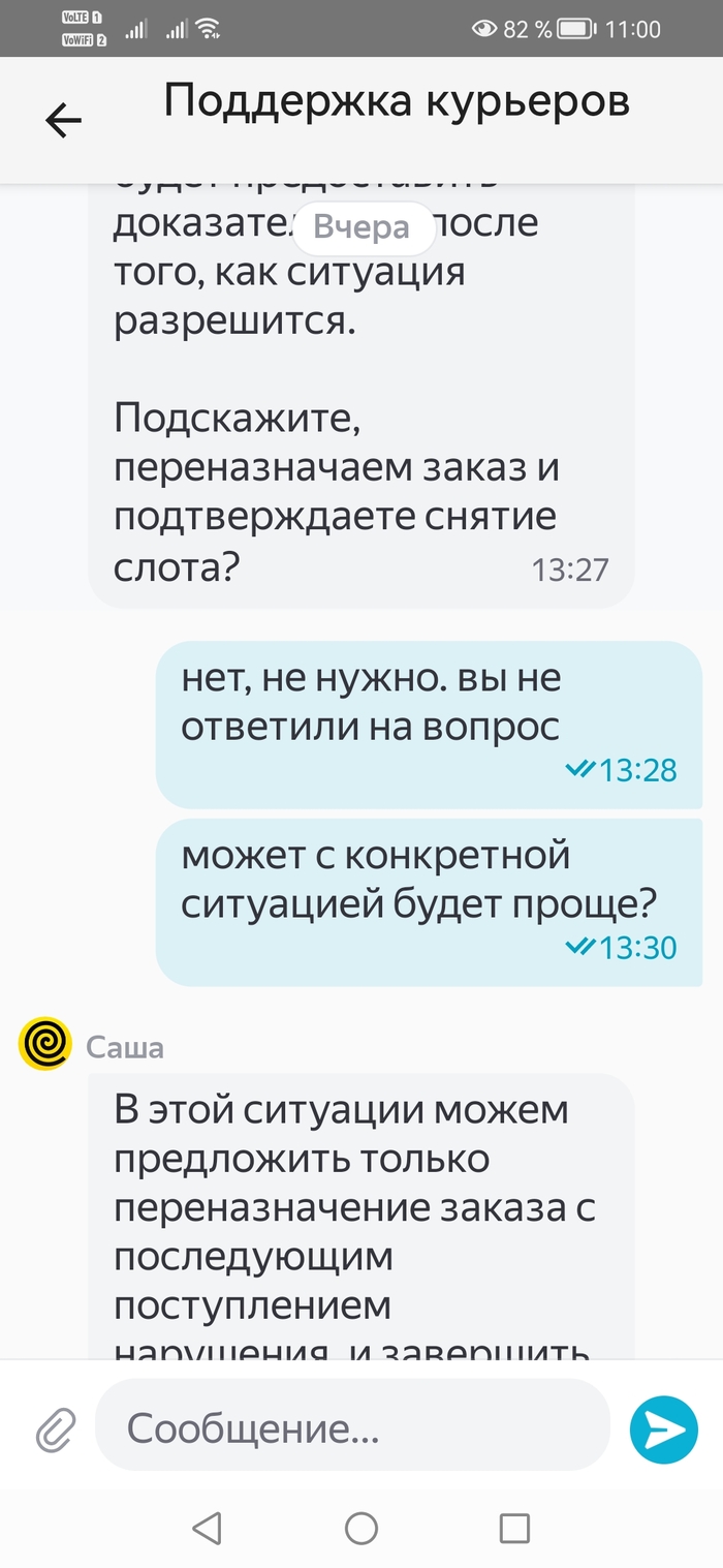 [моё] Доставка Курьер Яндекс Работа Яндекс Еда Работодатель Скриншот Нелепые диалоги Длиннопост
