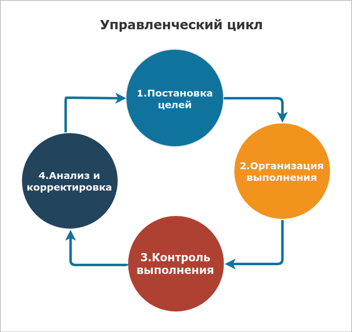 Если открыть учебники по управлению, то там будет много страшного и непонятного, что описывает цикл управления. Например:
