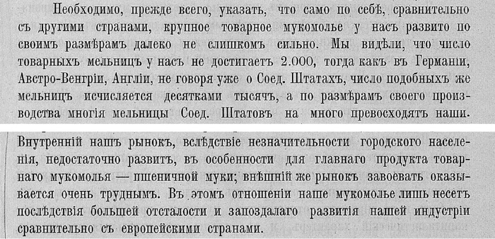 Источник: П. И. Лященко. "Мукомольная промышленность Россiи и иностранные потребительные рынки." С.-Петербургъ. Типографiя Редакцiи перiод. изд. Министрества Финансовъ. Галерная, 24. 1910 г.