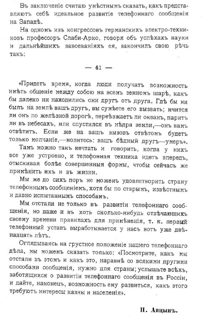 Источник: П. И. Авцынъ. "Современныя условiя устройства и эксплоатацiи телефоннаго сообщенiя въ Россiи." Докладъ въ Обществѣ Электротехниковъ въ Москве 23 декабря 1910 г.
