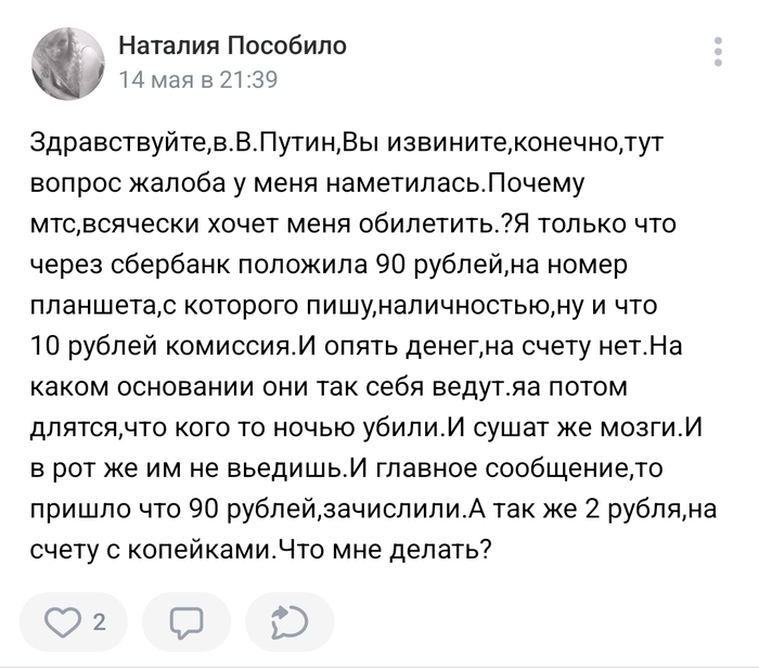 Не только у Макрона есть желание связаться с Путиным :) Российские граждане готовят вопросы и жалобы президенту несмотря на перенос даты «Прямой линии». Привожу в этом посте очередные примеры открыто опубликованных обращений.