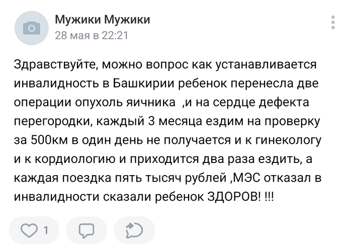 Прошу Главу Башкортостана Радия Фаритовича Хабирова помочь жительнице своей республики оформить инвалидность.