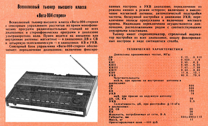Так что, срочно проверьте антресоли - чуланы. Вдруг там лежит, заботливо упакованный родителями, тюнер "Вега-004-стерео". Можете выменять на неплохую прибавку к семейному бюджету: полмиллиона на дороге не валяются.