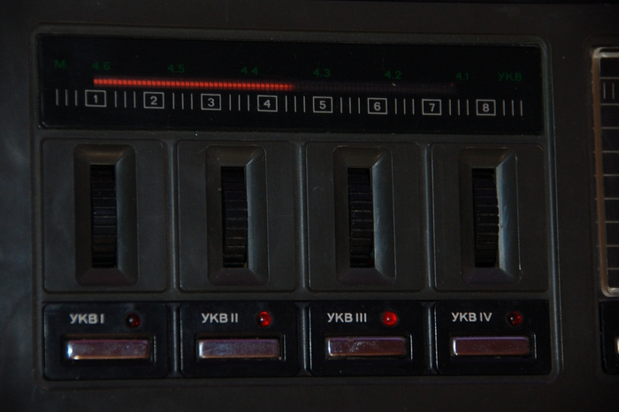 Попробовал аппарат в работе. Сенсоры работают четко, переходных процессов нет. Качество приема - высокое, шумов стереодекодера нет. При нажатии "моно" чувствительность повышается. БШН и АПЧ работают правильно. 4 фиксированные настройки выбирают станции без труда и хорошо держат даже с отключенной АПЧ. Индикатор настройки такой же, как и на Ласпи 001.