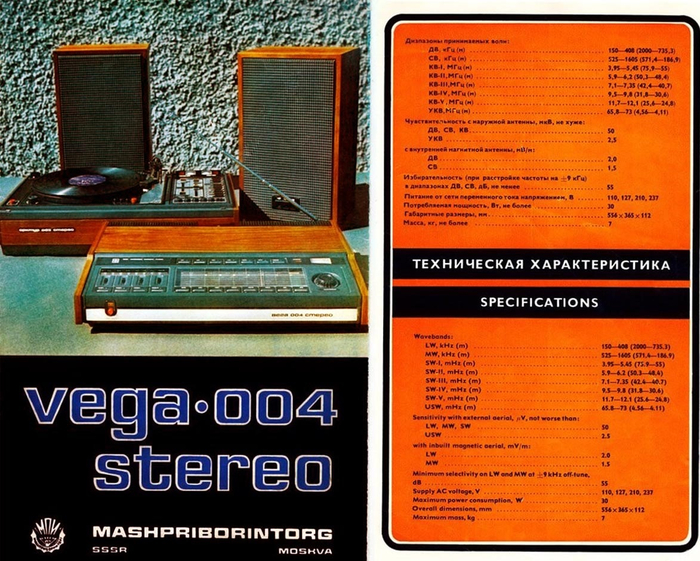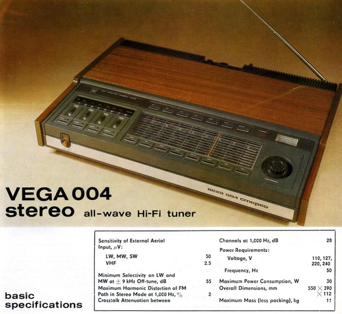 Не остался в стороне и крупнейший производитель бытовой радиоаппаратуры СССР - Бердский радиозавод. Тут уж конструкторы не стали скромничать и создали всеволновый радиоприемник Высшего класса "Вега-004-стерео".