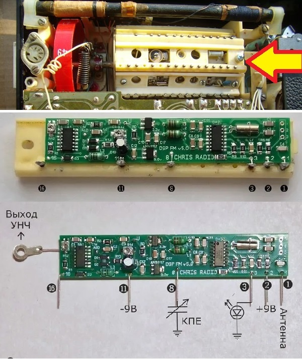 Впрочем это не мешает вставить плату в любой другой радиоприемник. Вот плата в радиоприемнике "Россия".