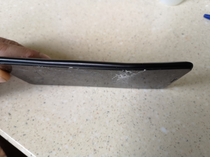 … вижу, что с обратной стороны он заклеен какими-то обрывками двустороннего скотча. По странному стечению обстоятельств, заклеен именно в том месте, откуда идут трещины. Рассматриваю «исток» этих трещин, и нахожу едва заметный микроскопический скол.