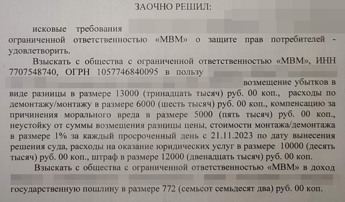 И на заочное решение ООО МВМ отреагировало полным забивом игнором.