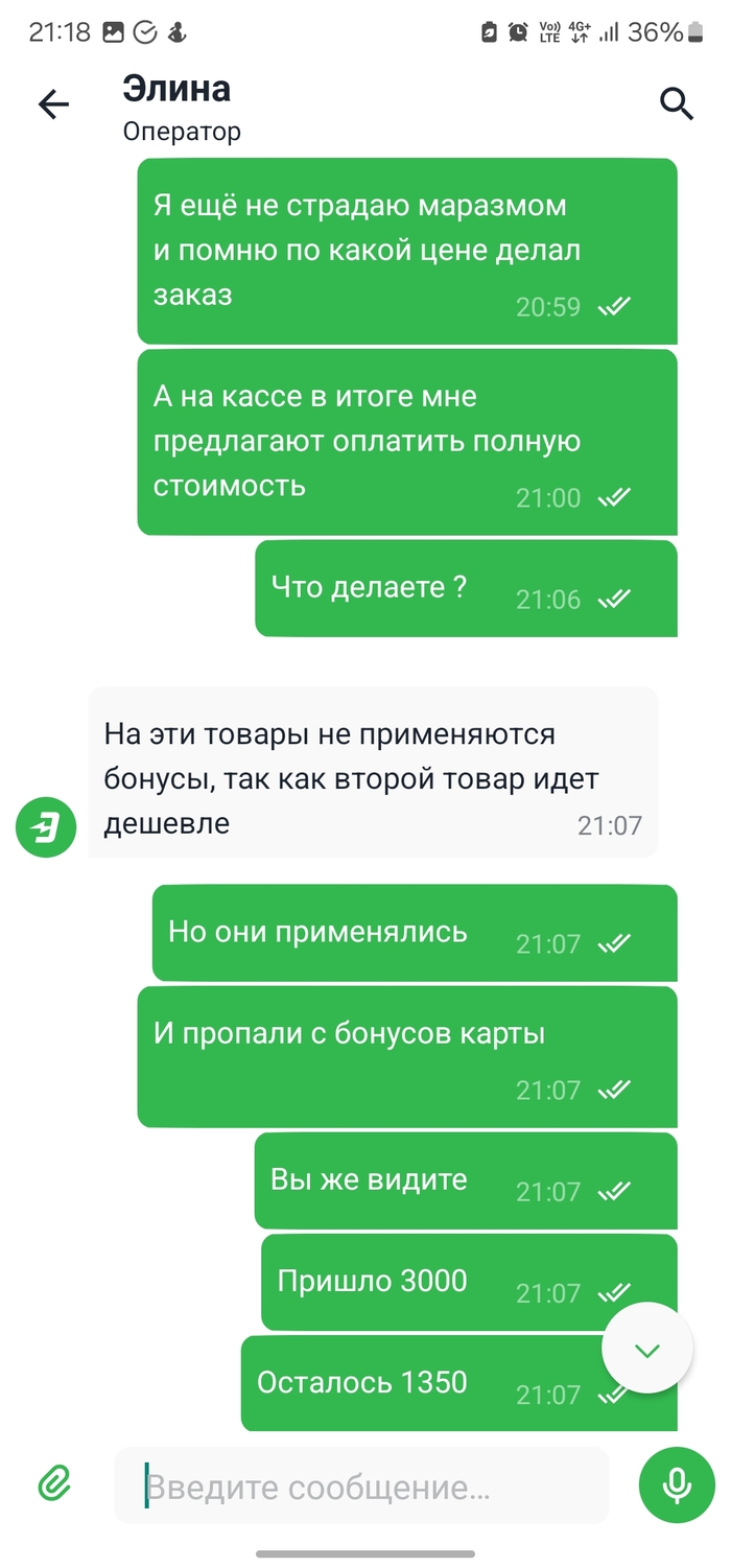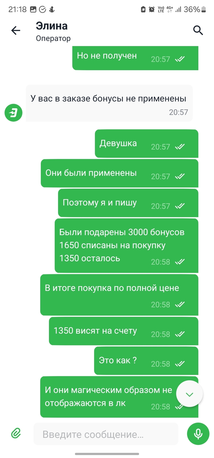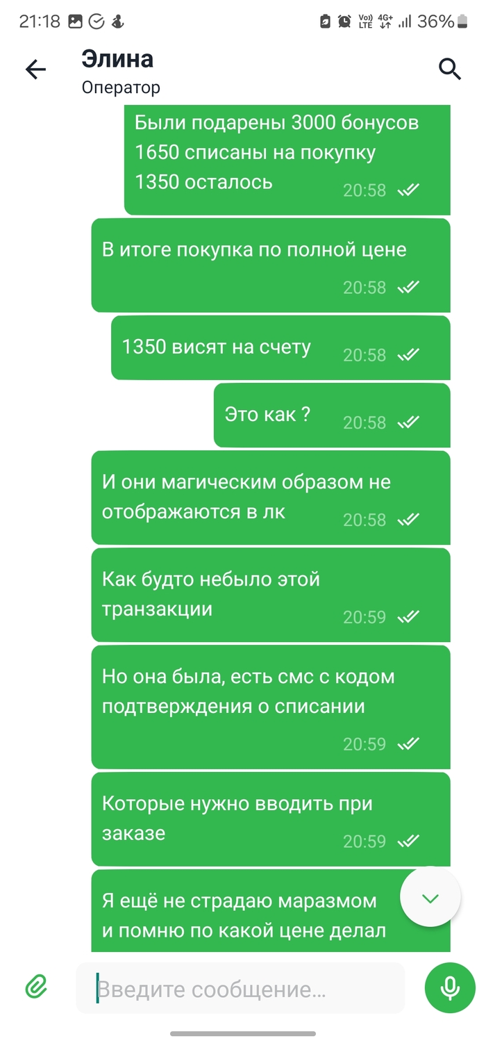 В общем вся информация есть на скринах, сделал заказа товара по акции, списал бонусы, оплату выбрал на кассе, пока доехал до магазина бонусы из заказа удалили, поддержка признала что был сбой, и они просто отредактировали заказ, в одностороннем порядке, не красиво, будет уроком, оплачивать заказ в мвм эльдорадо сразу, если не хотите, что бы заказ изменили пока вы думаете.