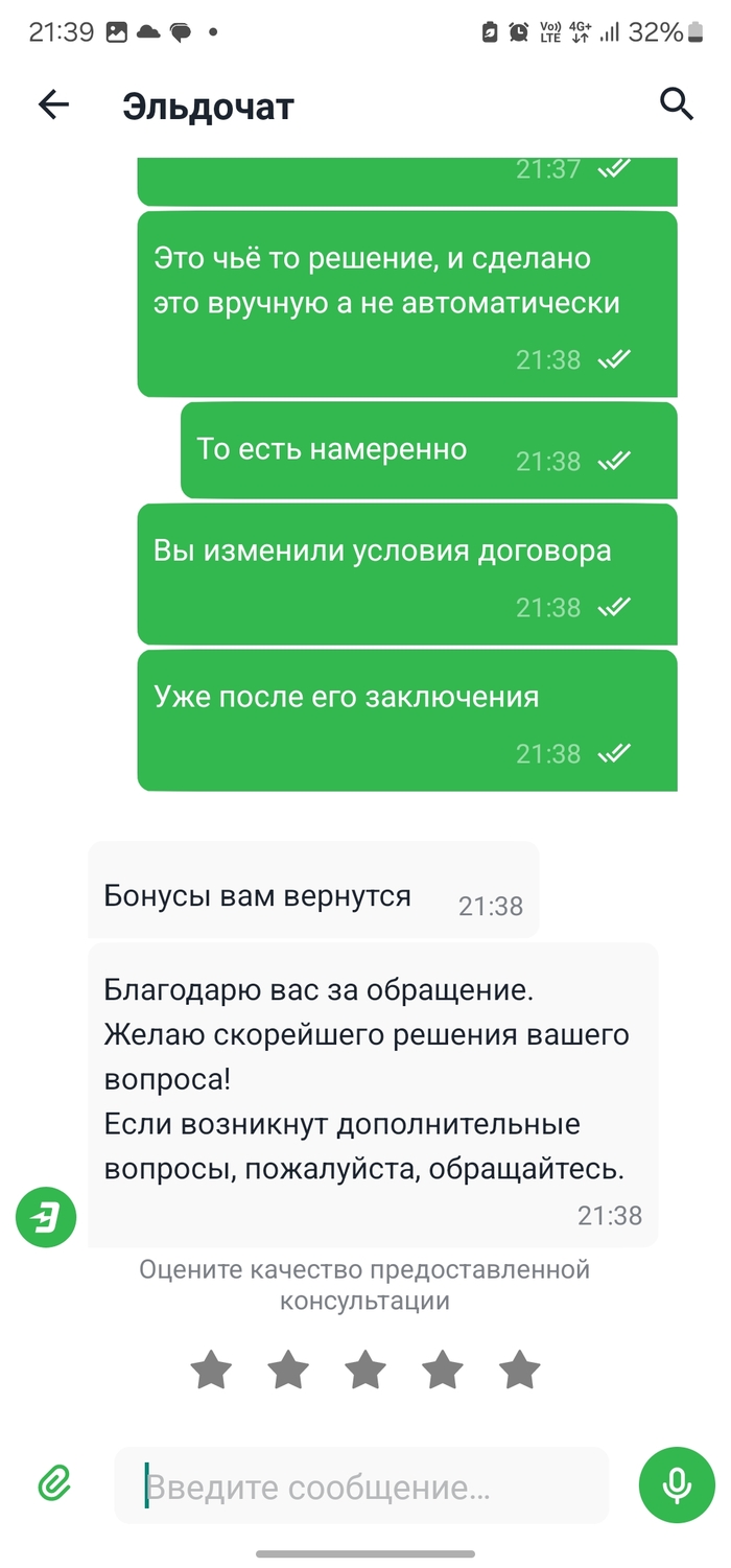 Вспомнил - чуть ли не единственным плюсом во всём вчерашнем общении с Эльдорадо был робот (видимо на базе ИИ) - общение практически как с человеком, прекрасно понимал мои фразы и давал правильные и развёрнутые ответы - хоть тут вы молодцы...