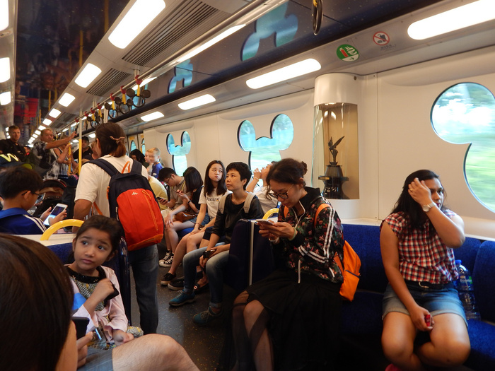 Итак, едем. Поезд метро в ДЛ вот такая. Тематические вагончики автоматического поезда, лыба начинает растягивать рожу уже в метро)))