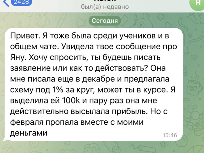 Через несколько дней после того, как я перевела свою часть денег на биржу Яне, Яну якобы взламывают и списывают 500.000₽