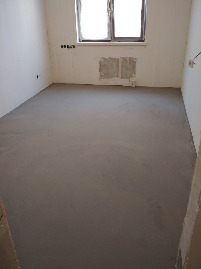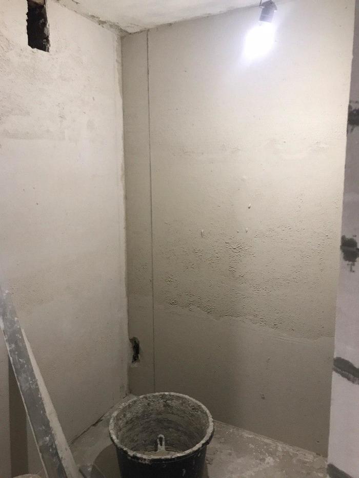 А всё потому, что раструб трубы канализации, как всегда был намного выше плиты основания, и его требовалось хорошенько отдолбить вокруг, чтобы опустить. Хрен с ним, мы уже привыкли выполнять этот идиотизм за идиотами, которые так монтируют.