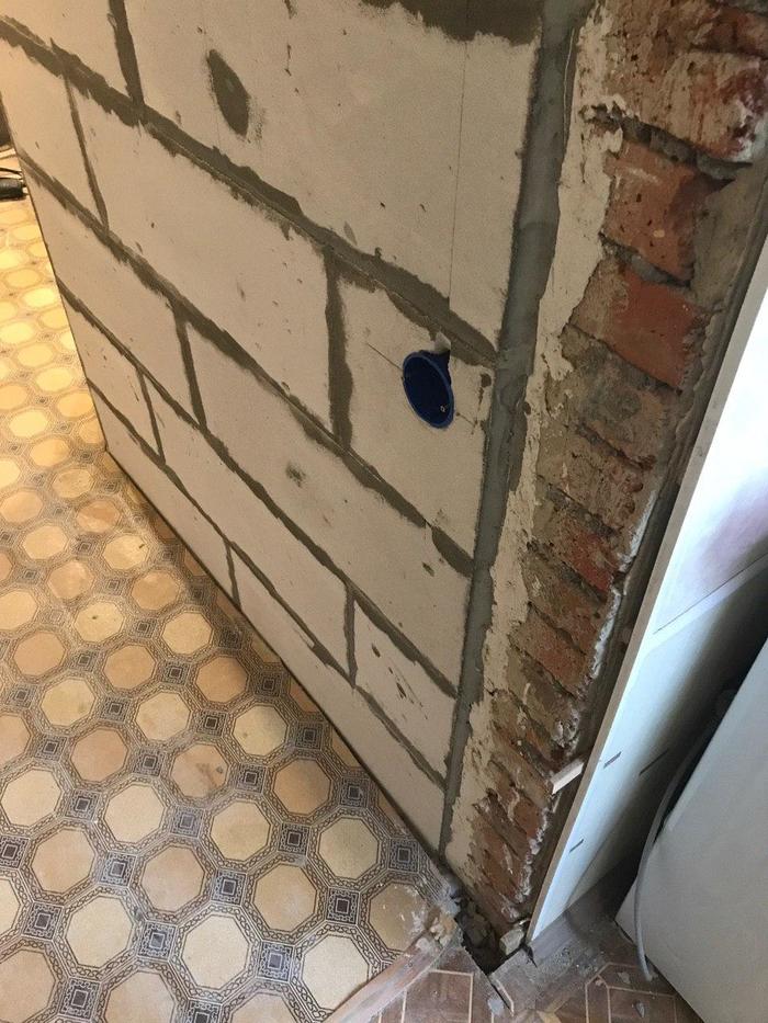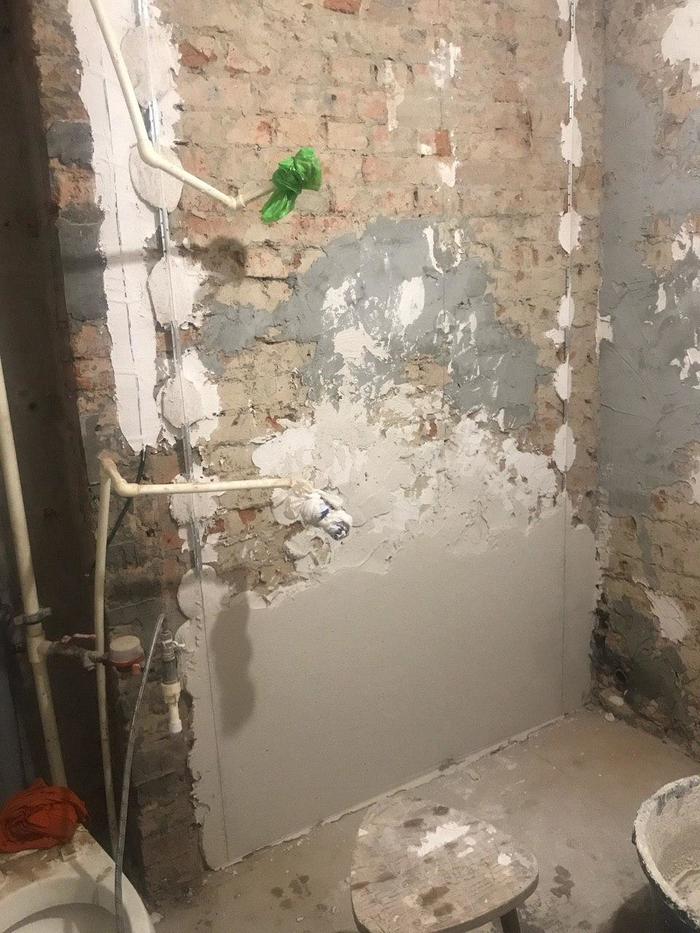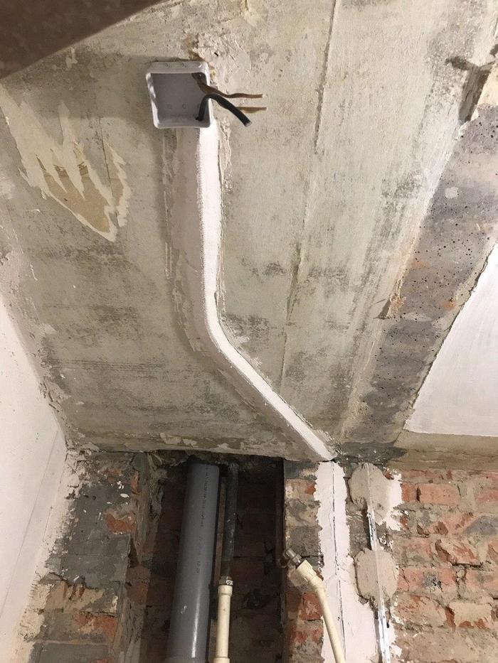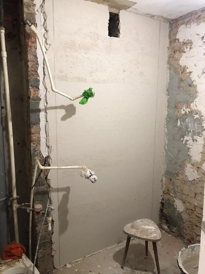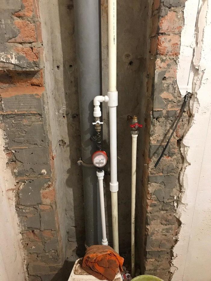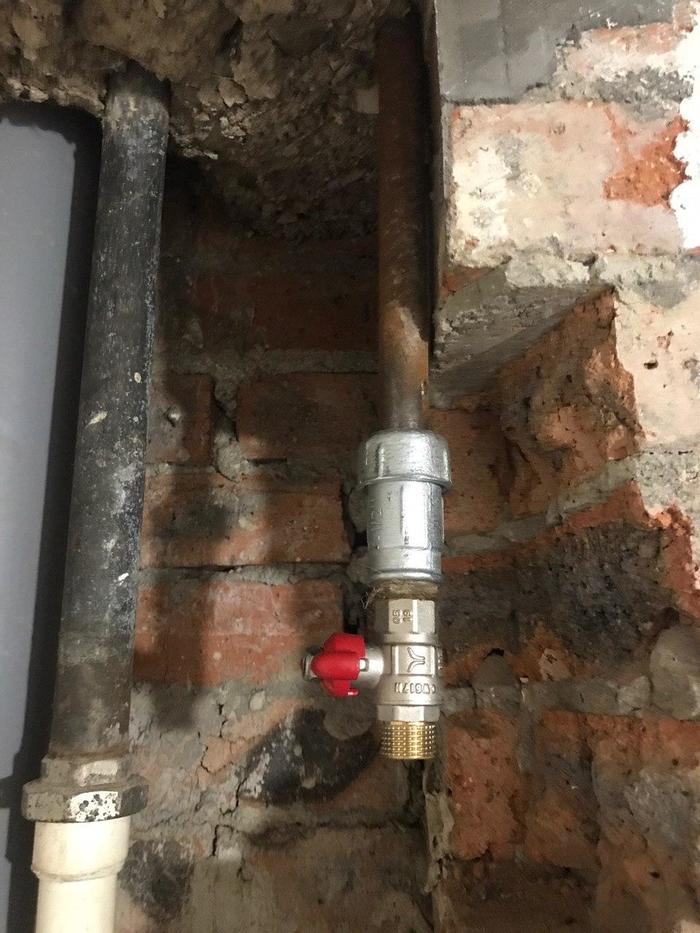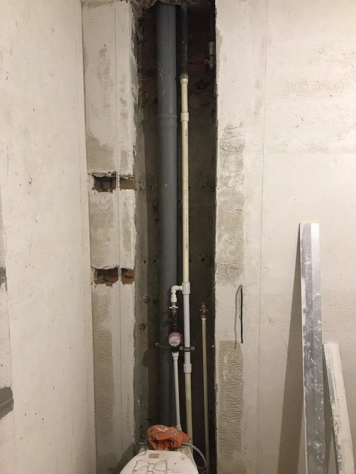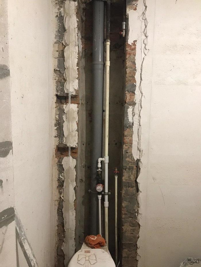 Так вот, Олег сразу обозначил мне и заказчикам, что не отвечает за сохранность водопроводной трубы при отдалбливании, на что я попросил не выносить нам мозг и постараться сделать сие дело максимально аккуратно.
