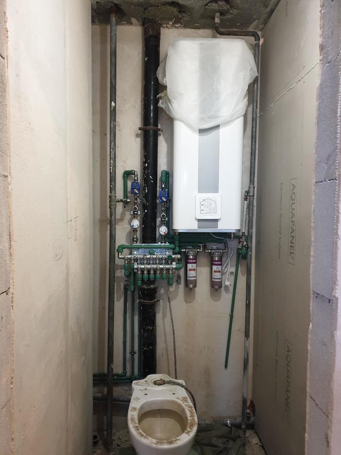 Ещё из интересного здесь - применены трубы #Stout, к которым лично у меня вопросов нет, а вот коллектора, с которыми иногда случаются проблемы, установлены более надежные - Far и Watts.