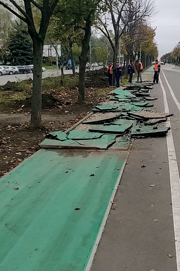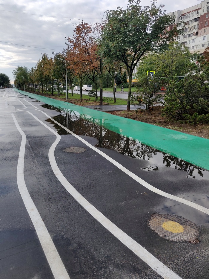 Где-то около месяца назад сделал пару снимков, где видно, что асфальт кладут прямо на грунт. Даже стало интересно, сколько продержатся такие "велодорожки"