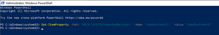 Вот так так. Оказывается, Майкрософт уже использует диск А: для загрузчика. То есть занять эту букву на этапе загрузки ядра мы не сможем. Ладно, давайте хотя бы попробуем изменить имя раздела на В: