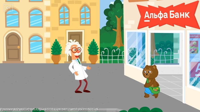 В 39-ой серии этого мультсериала детям (а целевая аудитория этого мультика - младший детсадовский возраст, маркировка 0+) рассказывают об удобстве карты Альфа Банка (!!!).