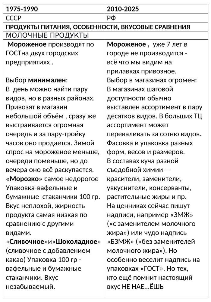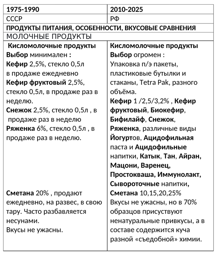 Всем привет. Это очередной рассказ из цикла "сравнение двух эпох", в нём я более подробно опишу что из себя представляли молочные продукты, сравню их с сегодняшними, поделюсь личными вкусовыми ощущениями от "древней" и современной продукции. (Сравнительные таблички ниже. Все рассказы написаны о городе с полумиллионным населением, бывшем промышленном центре. Так же предлагаю читателям ознакомиться с предыдущими историями из этой серии). И по традиции, для гостей моей виртуальной кухни - предисловие: