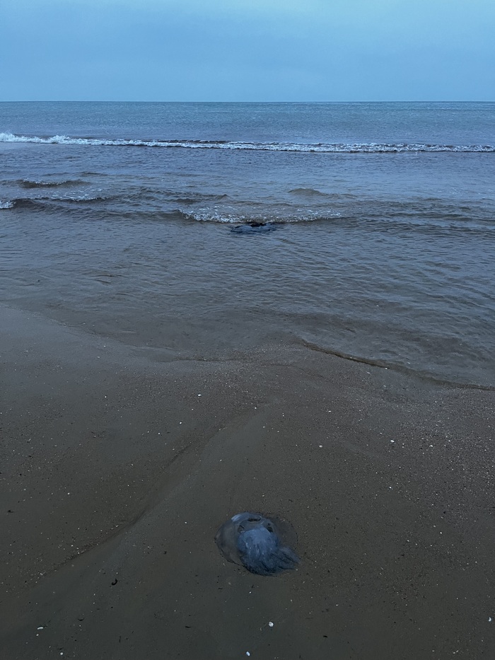 Из погибших животных мы наблюдали только множество медуз, но волонтеры говорят о дельфинах, птицах, кошки и собаки так же страдают от загрязнения мазутом.