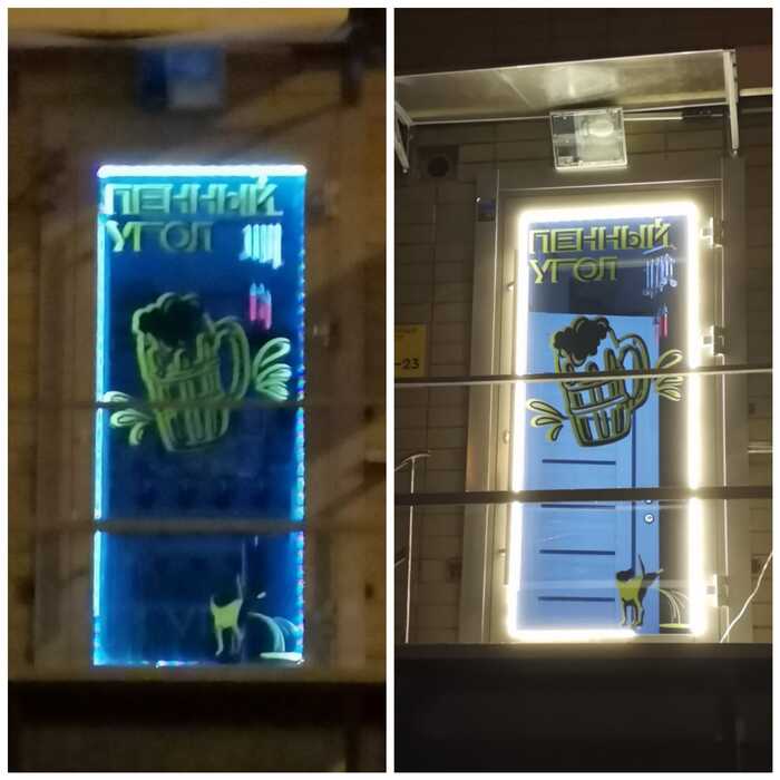 Сделал новые стикеры, повесил на стекло, подсветил, может быть переборщил, но в ночи теперь видно. На ночь не выключаю.