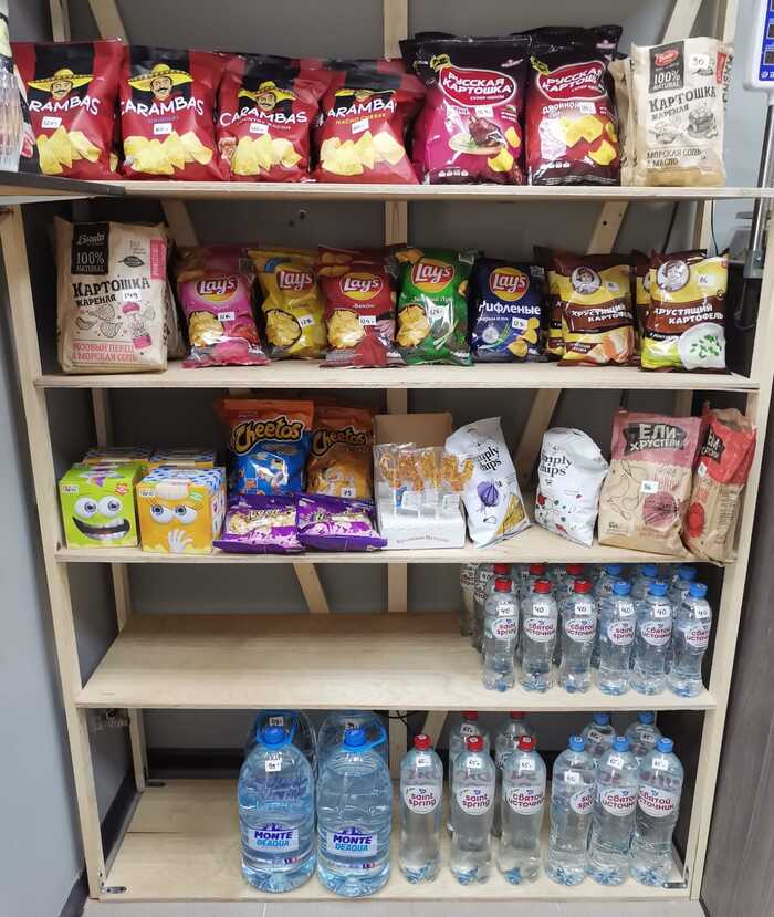 Далее, я расширил ассортимент снековой продукции, сколотил стеллаж, купил воды.