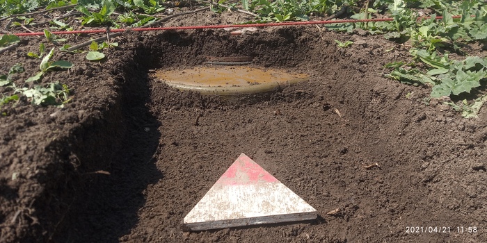 4.Тест металодетектера на тест поинте(Учебная ТМ62п закопанная от верха взрывателя до поверхности грунта на 15 см это максимальная допустимая глубина ископаемой угрозы,любой сигнал в грунте потенциальная угроза!Похуй что там гвоздь,дилдак,эректильное кольцо,пуля от манлинхера,рубь петровский,чешуйка,осколок,итд.)