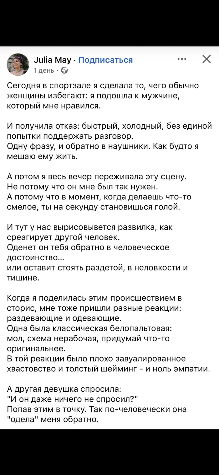 Я понимаю ваш вопрос: «Почему он не сказал честно?» Плохая новость – это ловушка. Ведь ответ не имеет значения. Он не успокоит. Даже если бы он сказал: «я испугался», «я не готов», «у меня свои сложности», это не возвращает чувство безопасности и не снимает боль. Вы не выбирали эту боль, не вам её снимать. Она пройдёт, когда наступит время. Когда вы решите о себе позаботиться.