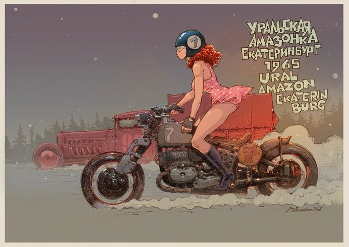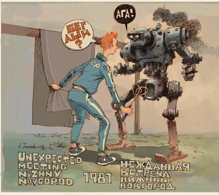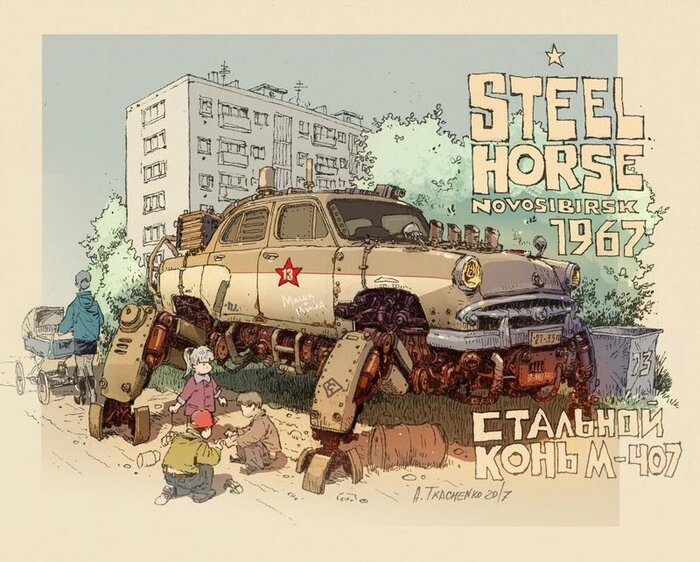 Художник из Нижнего Новгорода Андрей Ткаченко рисует в стиле "ностальгический дизель-панк". Его ожившие машины и механизмы обитают то ли в ностальгической советской эпохе, то ли в реальности постапокалипсиса. А может, это одно и то же?